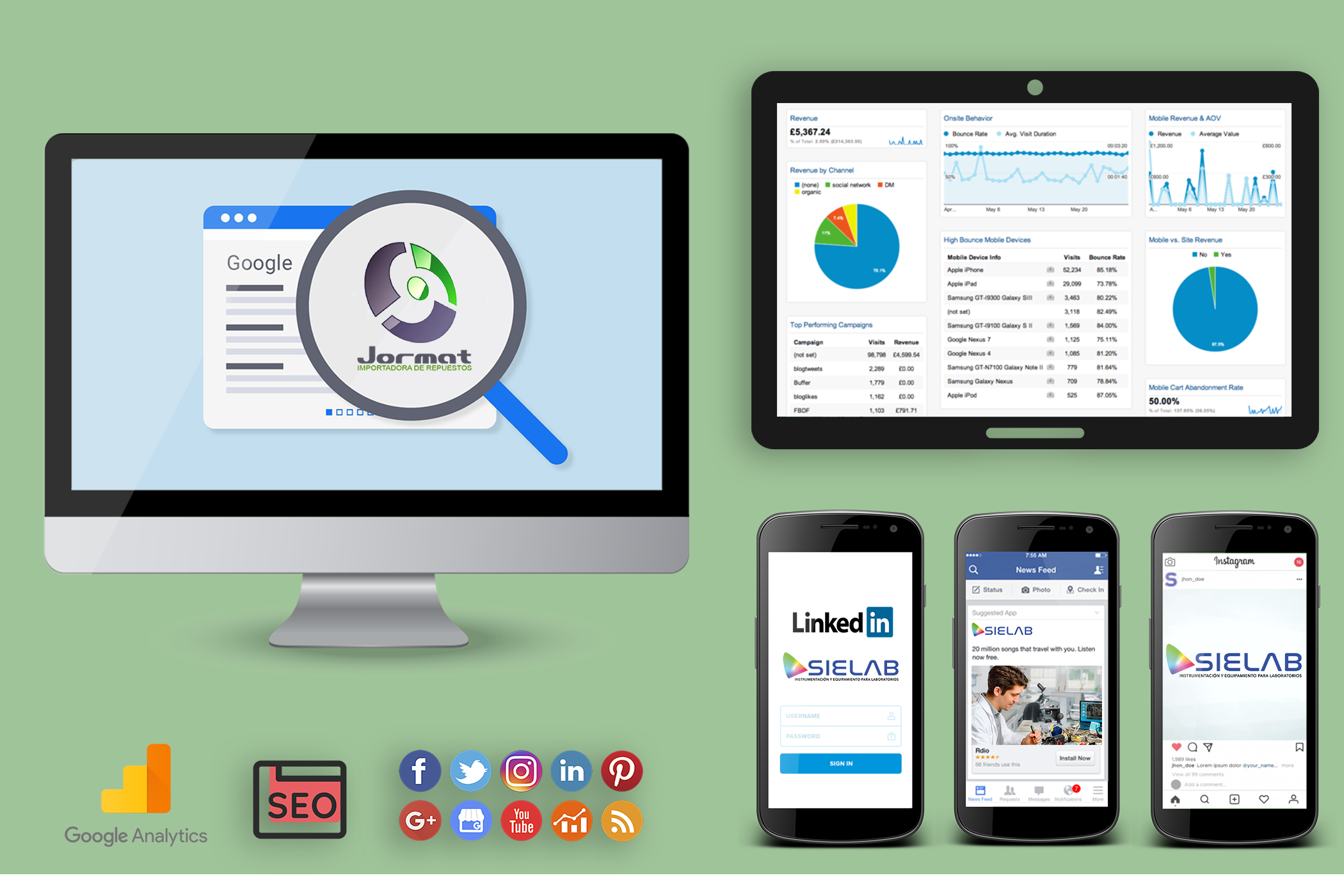 Campaña SEO + Analytica sistema de gestión On-line & Sitio web Jormat company. Configuración cuenta Linkedin , Facebook e Instagram empresas Sielab. Community manager RRSS Agrupación La kumbia Youtube y Facebook + Fidelización de clientes.